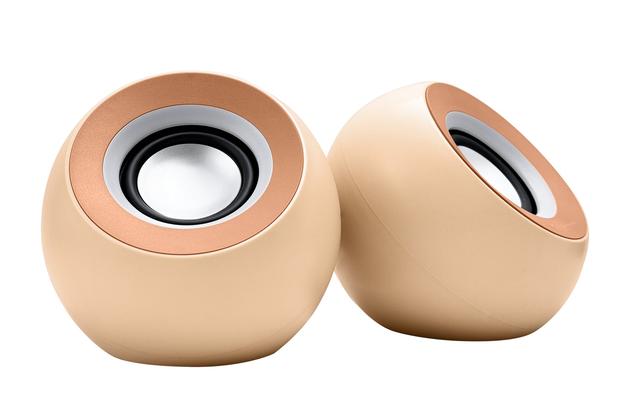Dual 2.25-inch full-range drivers paired with passive radiators deliver surprisingly deep bass and crisp highs from a desktop footprint smaller than a coffee mug. Enjoy studio-quality stereo sound without bulky equipment.