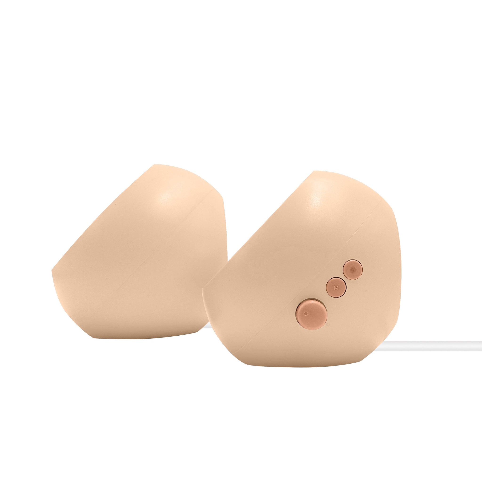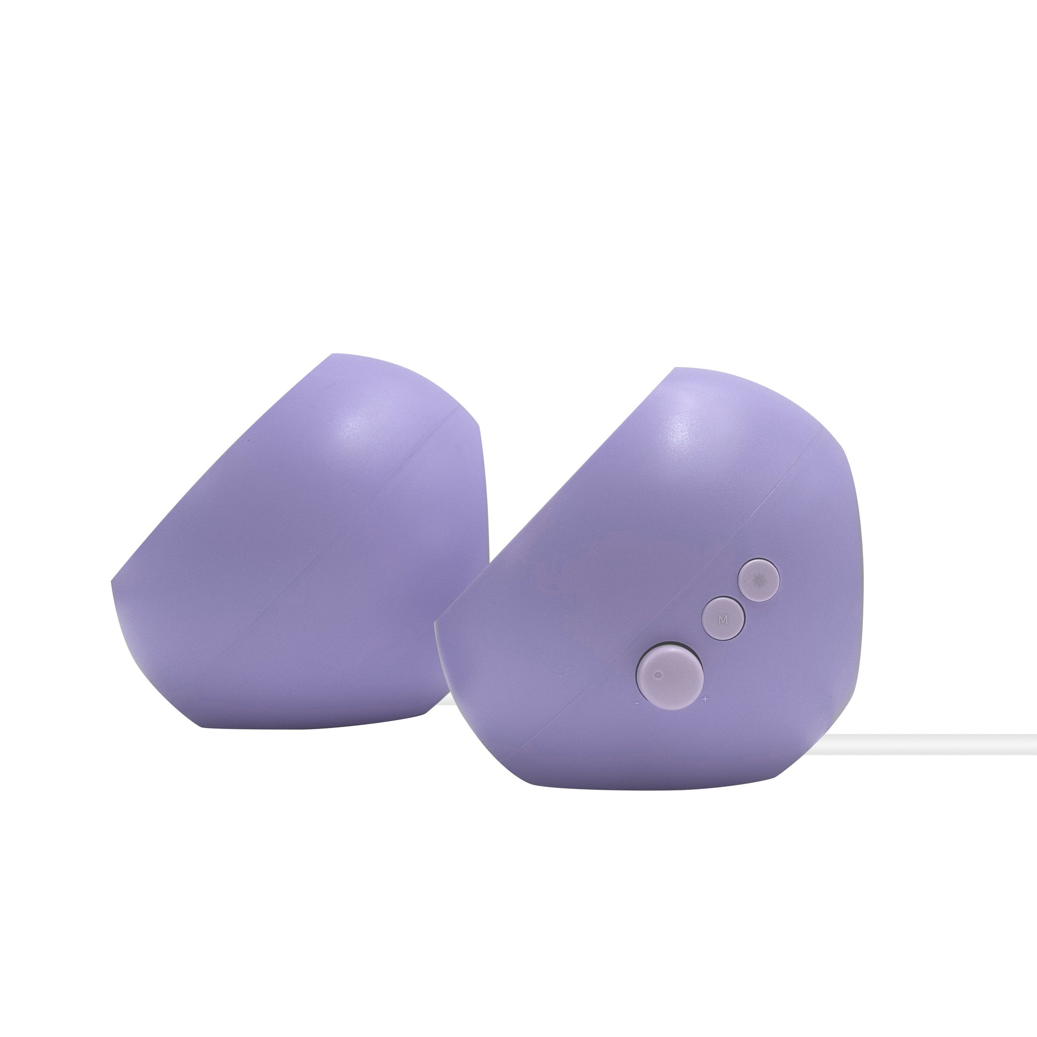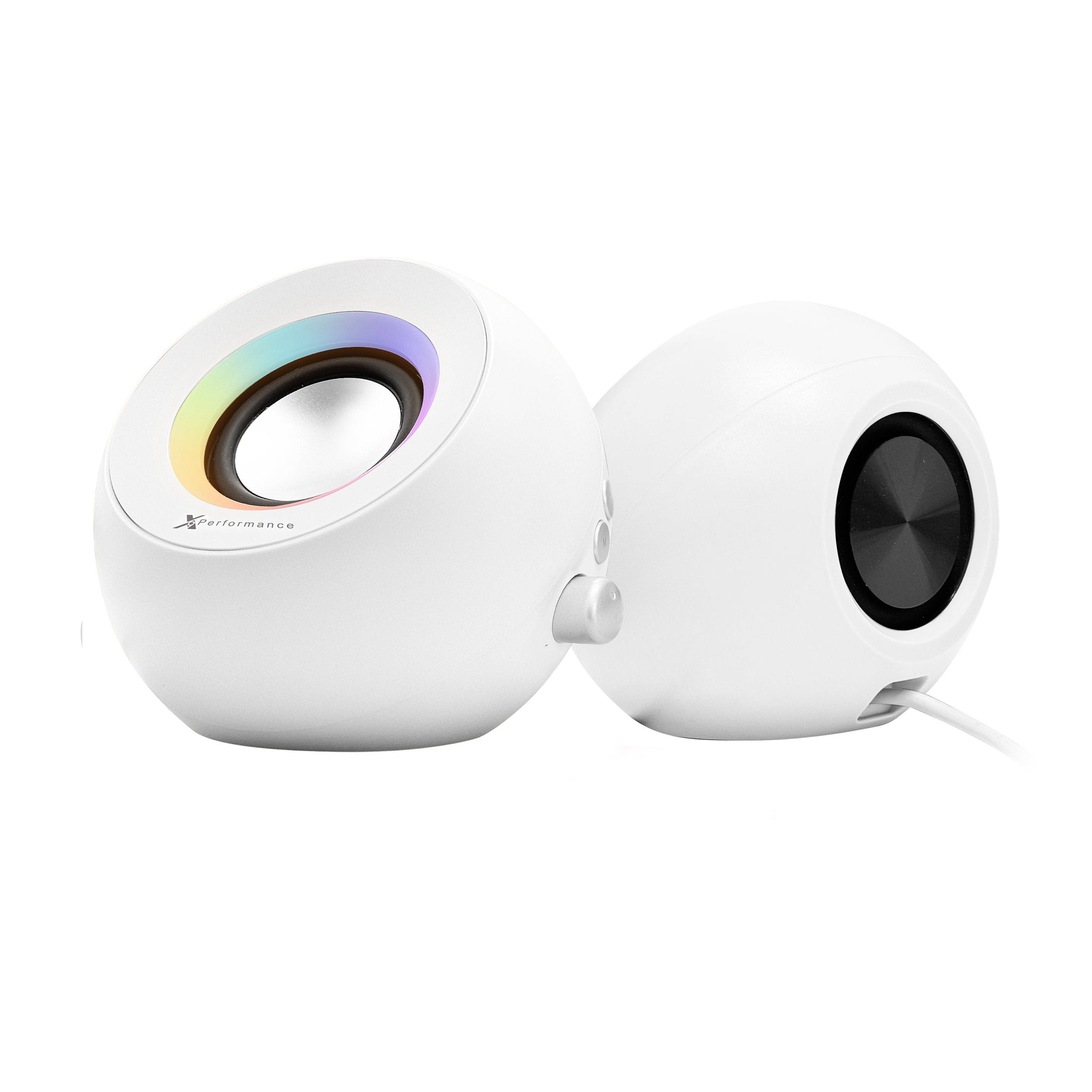 - Left and right speakers connected by a permanent cable for easy setup
